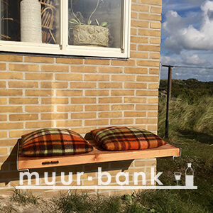 Danielle heeft ons een prachtige foto gestuurd van haar MuurBank aan hun huisje in de duinen op Terschelling. Haar bank is geschikt voor 2 personen en past mooi op de gevel die uit de wind ligt maar in de zon. Wat een lekker plekje lijkt ons dat.